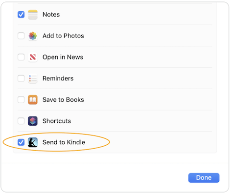 3Marque a caixa para selecionar “Send to Kindle”.